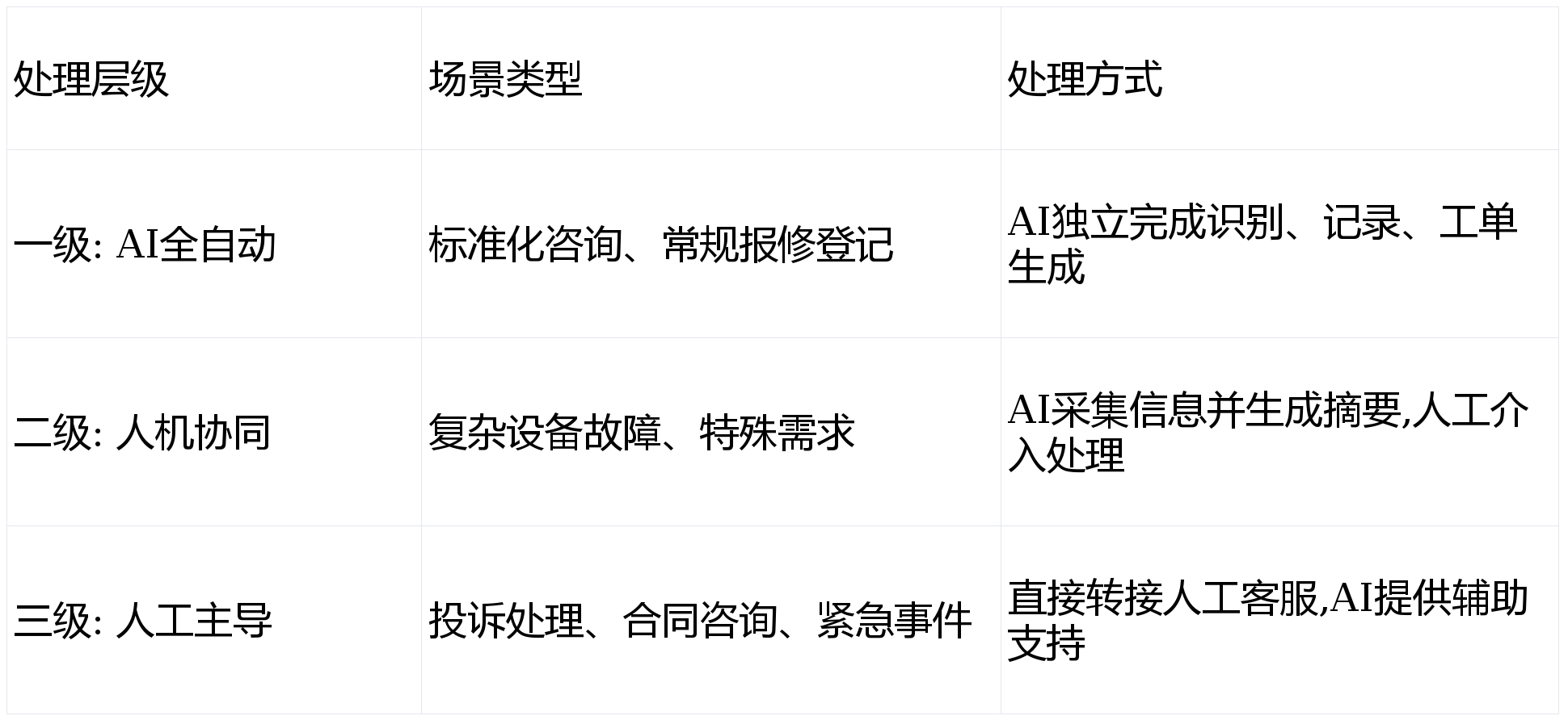 佰盛集团、ETCP等企业已通过引入智能客服取现场办事办理系统,出格适合夜间或节假日无人值守时段的应急响应。3-6个月):依托BIM运维模子,支撑取多品牌系统对接。当前物业办理行业面对严峻的成本挑和。第一阶段(试点期,支撑企业按照本身营业流程矫捷定制人机协同法则,参考行业案例,第二阶段(集成期,实现低成本。例如合力亿捷等办事商供给的API取集成两头件,写字楼办理者应将AI手艺视为焦点能力而非辅帮东西。包罗楼层、设备类型(空调、电梯、照明、消防等)及毛病描述。实现从衡宇管家向数字资产运营商的转型。成熟的全场景客服平台(如合力亿捷等)凡是内置可设置装备摆设的工做流引擎取事务引擎,采用两头件方案实现异构系统集成,部门成熟办事商供给从摆设培训到持续运营的全流程赋能办事,应对策略:采用AI即办事(AIaaS)贸易模式,